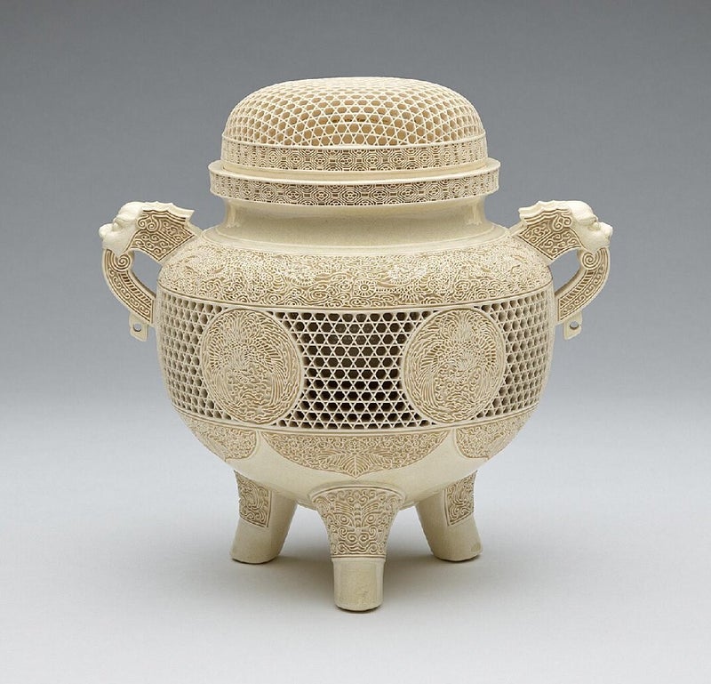 Keida Masataro was born in Kagoshima Prefecture in 1852. He succeeded his uncle at the Keida kiln in 1894 and tried to improve the quality of Satsuma ceramic wares that tended to decline at that time. He succeeded and became famous for his open work decorations. According to Charles Holmes (in Marcus Borne Huish: Japan and its art – 1912) Masataro Keida of Kagoshima, Satsuma had (in this time) the reputation of being the most skilled potter of his province. “His finely and delicately pierced and chiselled work is a marvel of technical skill, so much so, indeed, that one wonders at times if so much patience and dexterity is not almost misplaced when applied to material of such frangibility as soft past faience.”