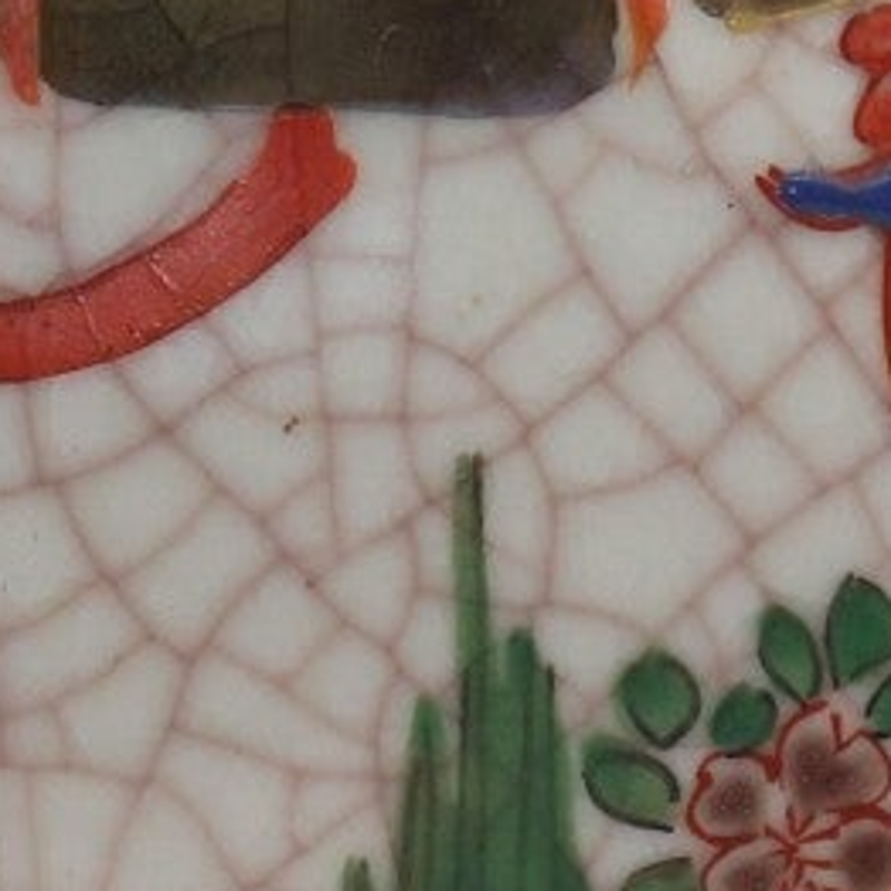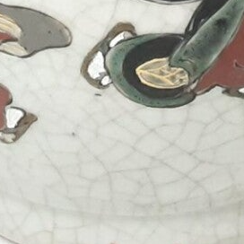 Post-War production of cheaper moriage-style Satsuma may have even larger crackles, separated by up to 6 mm. These are often irregular and may be quite grey in colour. The worst examples disturb the overall visual impression instead of being an intrinsic part of the beauty of an object.