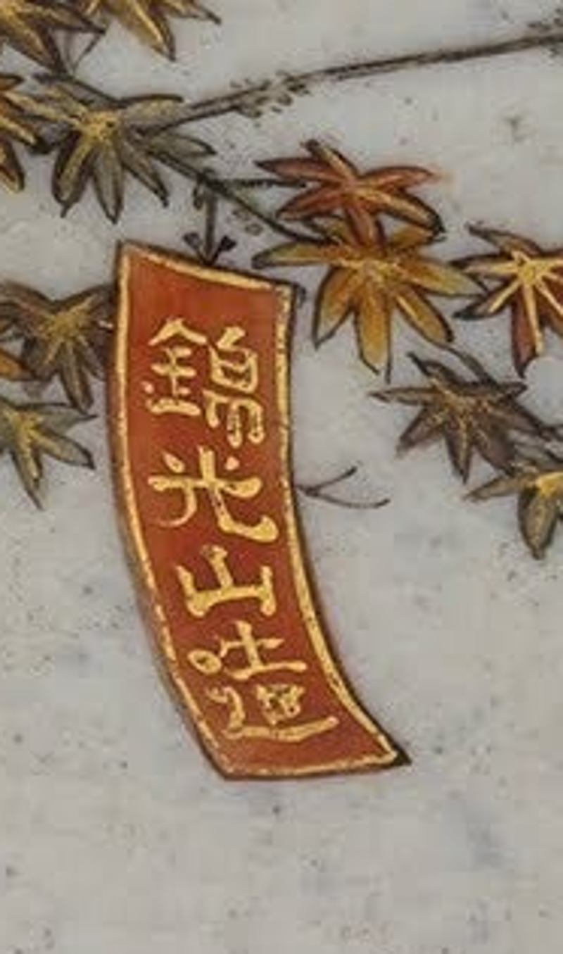 English language marks began to be used during the latter half of the Taisho period. There are known stamped Kinkōzan marks that include either “Nippon” or “Japan” which probably date to the 1920s. In the 1920s, Kinkōzan also used a paper label with the English words “Kinkōzan, Kyoto-Japan”, in addition to the hand-painted kanji studio name. He also used a "Japan" or "Made in Japan" stamp in combination with a painted name in kanji or a stamped name Kinkōzan in English or kanji.[9]