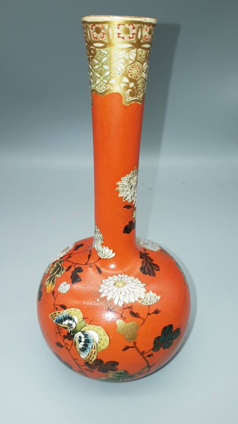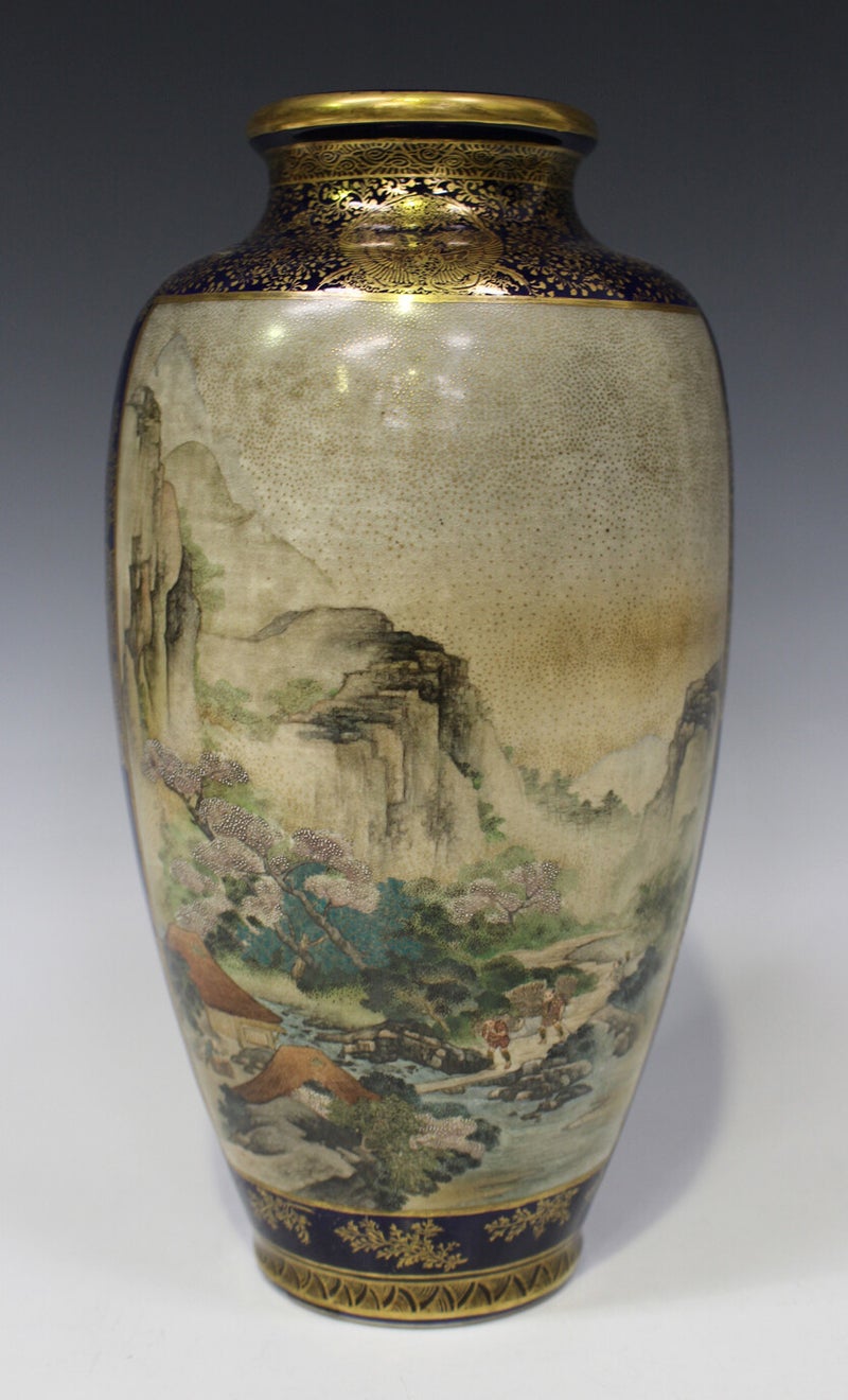 Kusube Sennosuke, whose real name was Taniguchi, was born in 1859. Initially he wanted to be a painter and studied under Kono Bairei, a master of kacho-e painting, and renowned for his paintings of birds. He was ïn 1881 "adopted" by Kusube Kameyoshi whose family had for generations manufactured ritual objects for use in Ise Jingu, the shinto shrine that the Japanese adore as "Soul of Japan," located in Ise city, Mie Prefecture. On that occasion, he took Kusube's last name. Out of respect for his new surname Kusube and possibly also for economic reasons , Satsuma style pottery was a booming business at that time, he abandoned his painting career and established the Kusube Pottery Trading Factory to promote the local Awata ware industry. He had great success with this business, and as this success grew, so did the number of artisans working under the Kusube company name. Although the Kusube workshop ( meant is the Kusube Pottery Trading Factory ) certainly also produced high-level works, which were probably produced by Sennosuke himself, it also produced many medium and even low-level works. The company closed in 1940, shortly before Sennosuke's death in the same year.