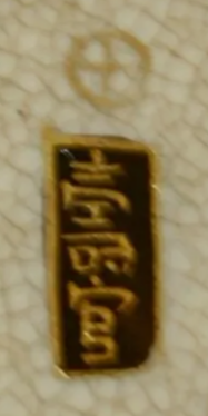 With regard to blue mon, the opposite applies. Most such pieces are undoubtedly from Kagoshima. However, at least some mainland production of gosu blue wares used the blue mon. For example, some pieces by Kinkōzan, Chikusai and Fuzan include a gosu blue mon. (See: Marks and makers)